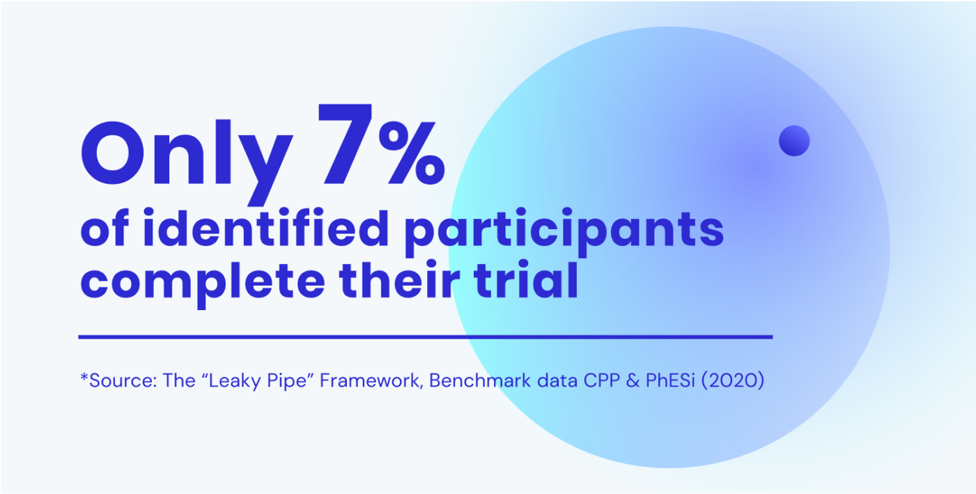 If you identify 100 participants, this will on average lead to 7 participants completing your trial (source). That’s 93% of the participants you’ve found, and not kept.